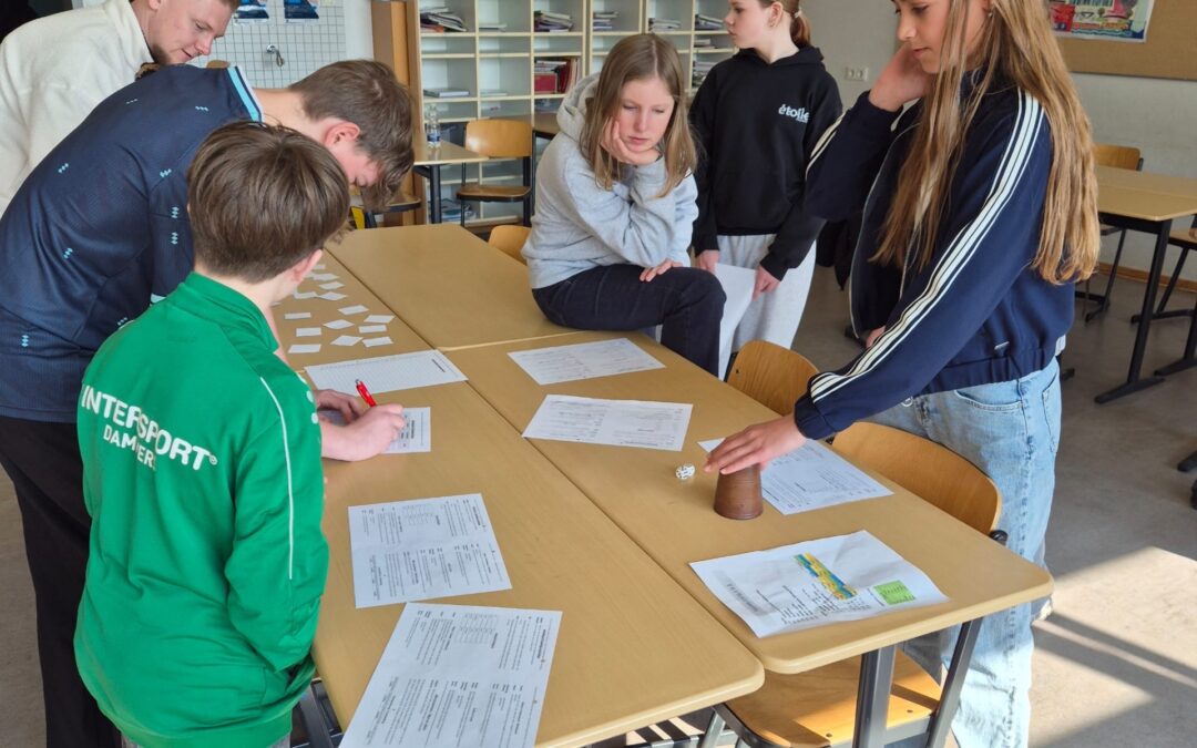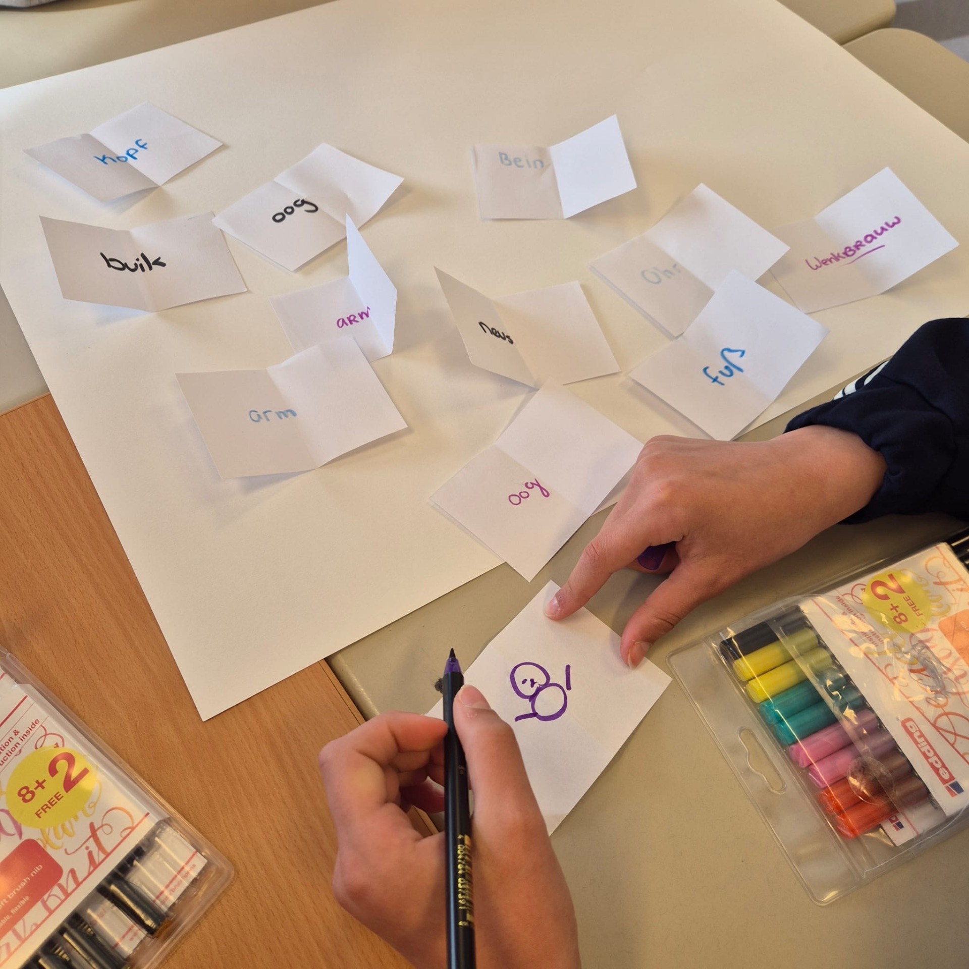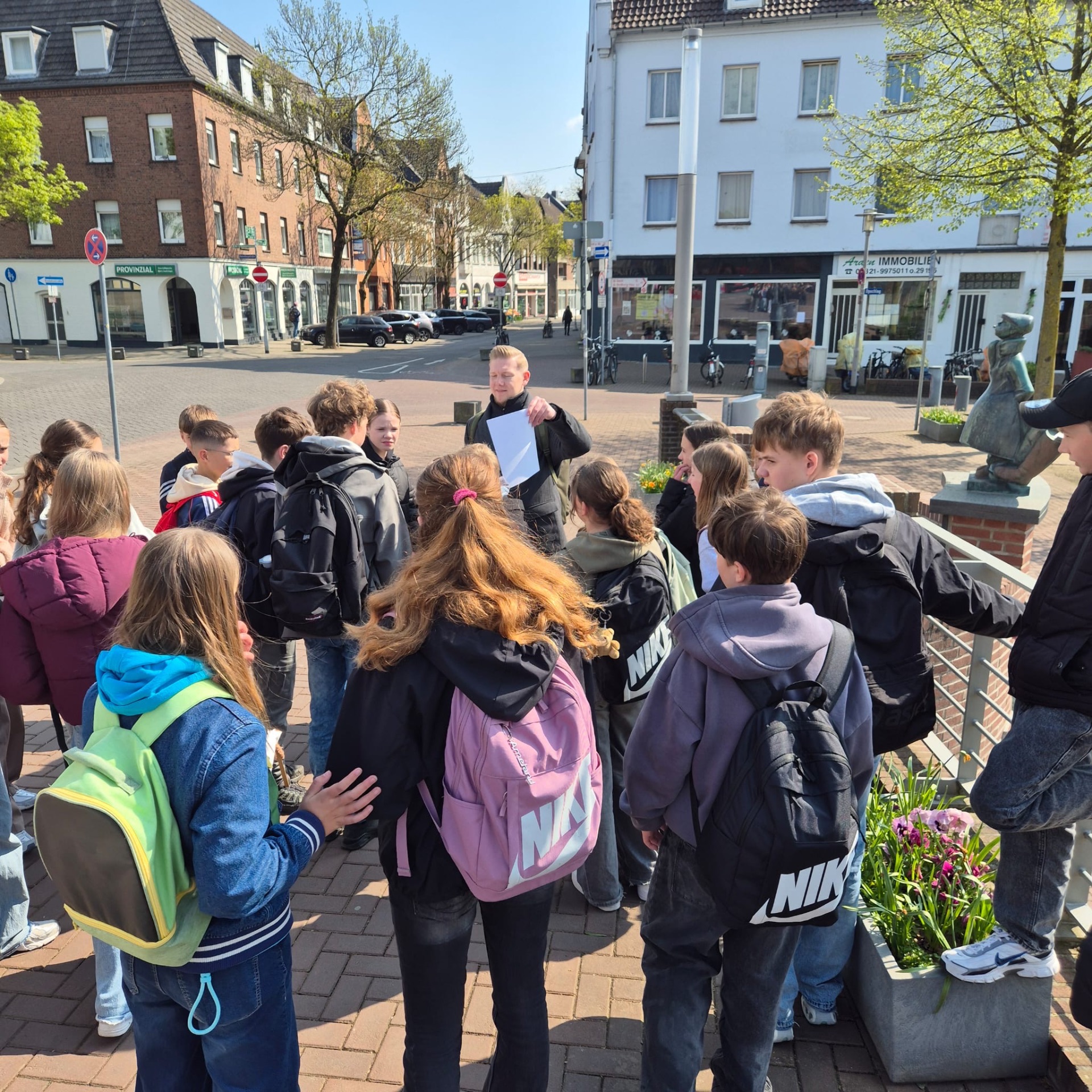Der Höhepunkt des Projekts fand schließlich letzte Woche statt. Am Dienstag trafen sich alle Beteiligten in Kleve zum ersten Mal. Der Tag begann mit vier abwechslungsreichen Workshops mit Unterstützung von Frau Int-Veen und Herr Decorte. Im Fokus standen das gegenseitige Kennenlernen, eine Schulrallye sowie kreative Sprachspiele wie „Spelletjes met Letters“ und verschiedene Zungenbrecher und Wortspiele. Nach einer kurzen Pause ging es in die Klever Innenstadt, wo die Schülerinnen und Schüler in Gruppen eine spannende Stadtrallye absolvierten. Zwei Tage später folgte am Donnerstag das zweite Treffen in Boxmeer. Auch hier wartete ein vielfältiges Programm. Zu Beginn konnten die Jugendlichen zwischen verschiedenen Aktivitäten wählen, darunter ein Speeddating, eine Schulführung oder ein kreatives Gruppenspiel zum Monsterzeichnen. Nach einer Pause erkundeten die Schülerinnen und Schüler in Kleingruppen die Innenstadt von Boxmeer im Rahmen einer weiteren Stadtrallye. Die Ergebnisse beider Rallyes wurden am Ende der Projekttage ausgewertet und die Siegergruppe durfte sich über einen Preis freuen.