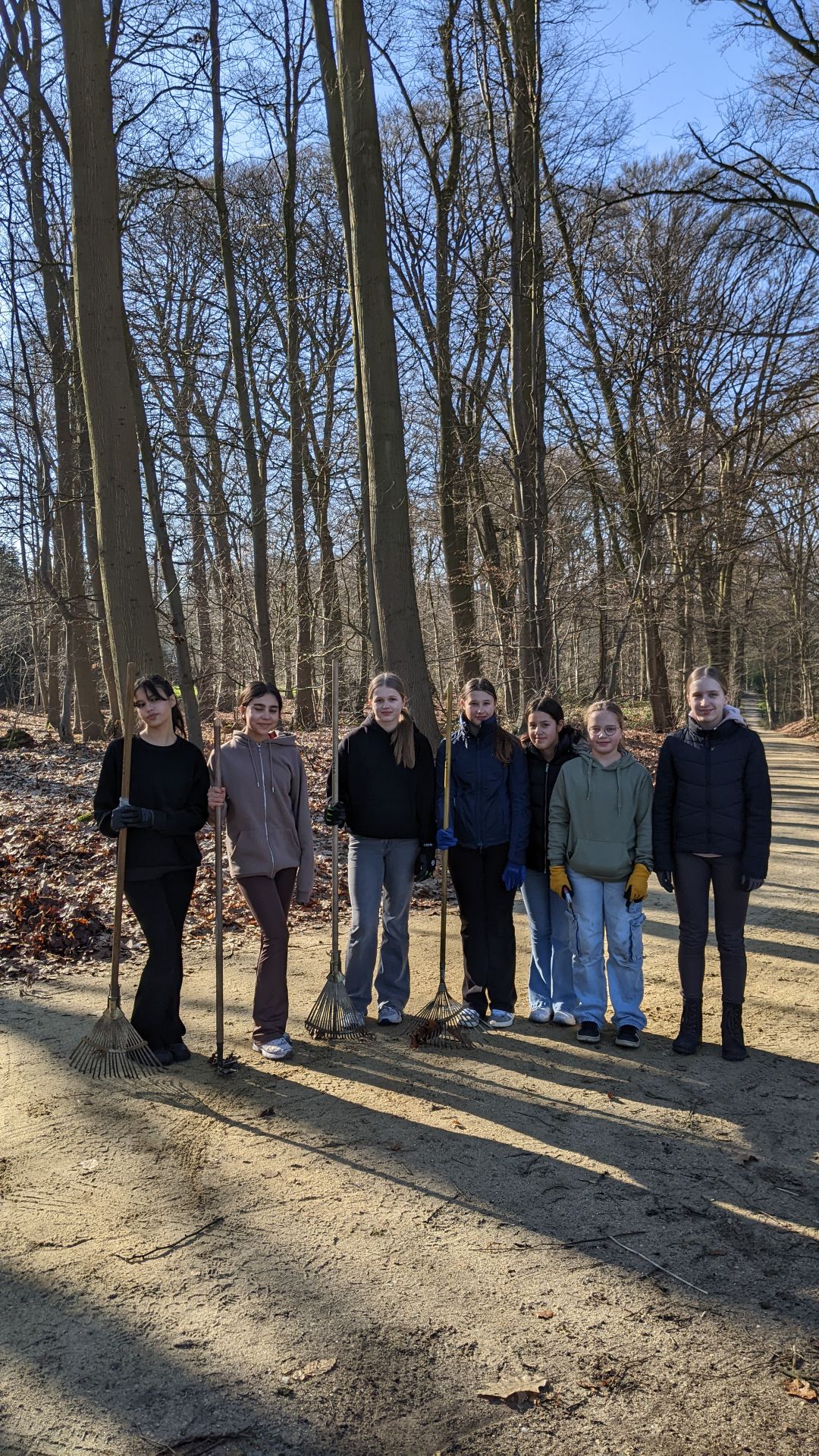 Auch in diesem Jahr engagierten sich die Schülerinnen und Schüler unserer Schule aktiv für Natur und Umwelt in unmittelbarer Umgebung. Zum Waldtag 2026 fanden, wie bereits im vergangenen Jahr, zwei Aktionen statt, bei denen mehrere Klassen der Jahrgangsstufe 7 gemeinsam mit ihren Biologielehrerinnen und Biologielehrern (Frau Siegels-Hübenthal, Frau Looschelders, Frau Ammann, Frau Kramer, Frau Verhaelen, Herr Ripgens und weiteren Begleitern) draußen arbeiteten und lernten. Während eine Gruppe im Reichswald neue Bäume pflanzte, kümmerten sich andere Schülerinnen und Schüler im Sternbusch um die Pflege von Wegen, Grünflächen und historischen Orten.