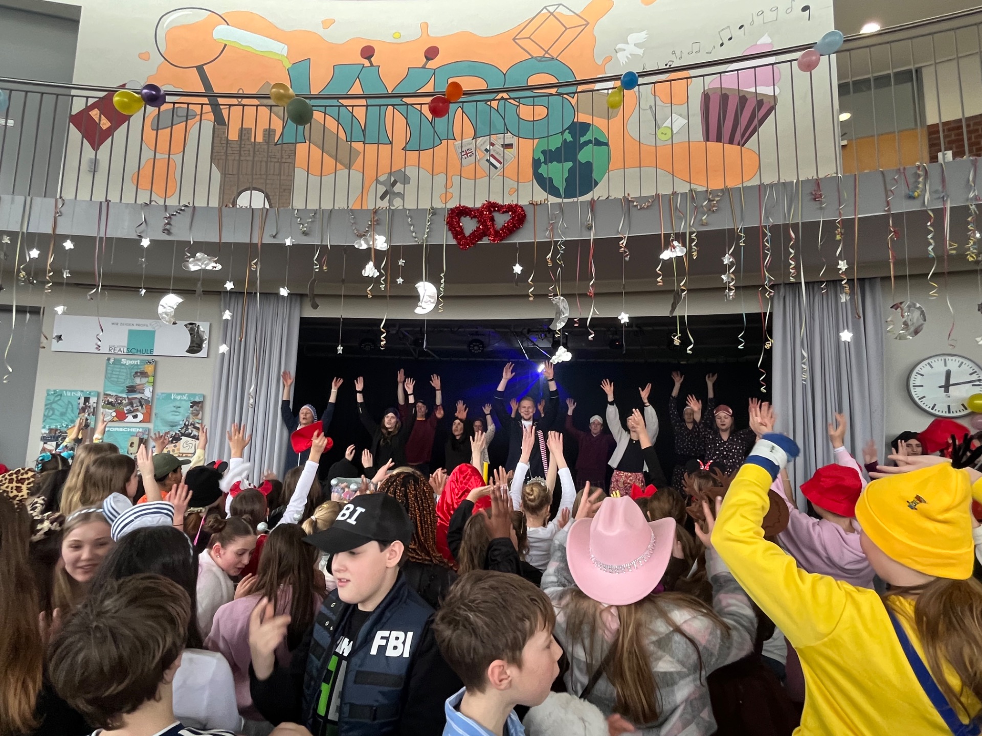 Unter dem Motto „Lasst euren Träumen freien Lauf – die KKRS macht heute einen drauf!“ verwandelte sich das Forum unserer Schule am Altweiberdonnerstag ab der 3. Stunde in eine bunte Karnevalswelt.