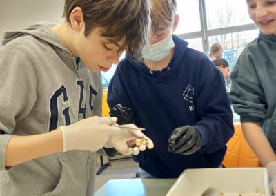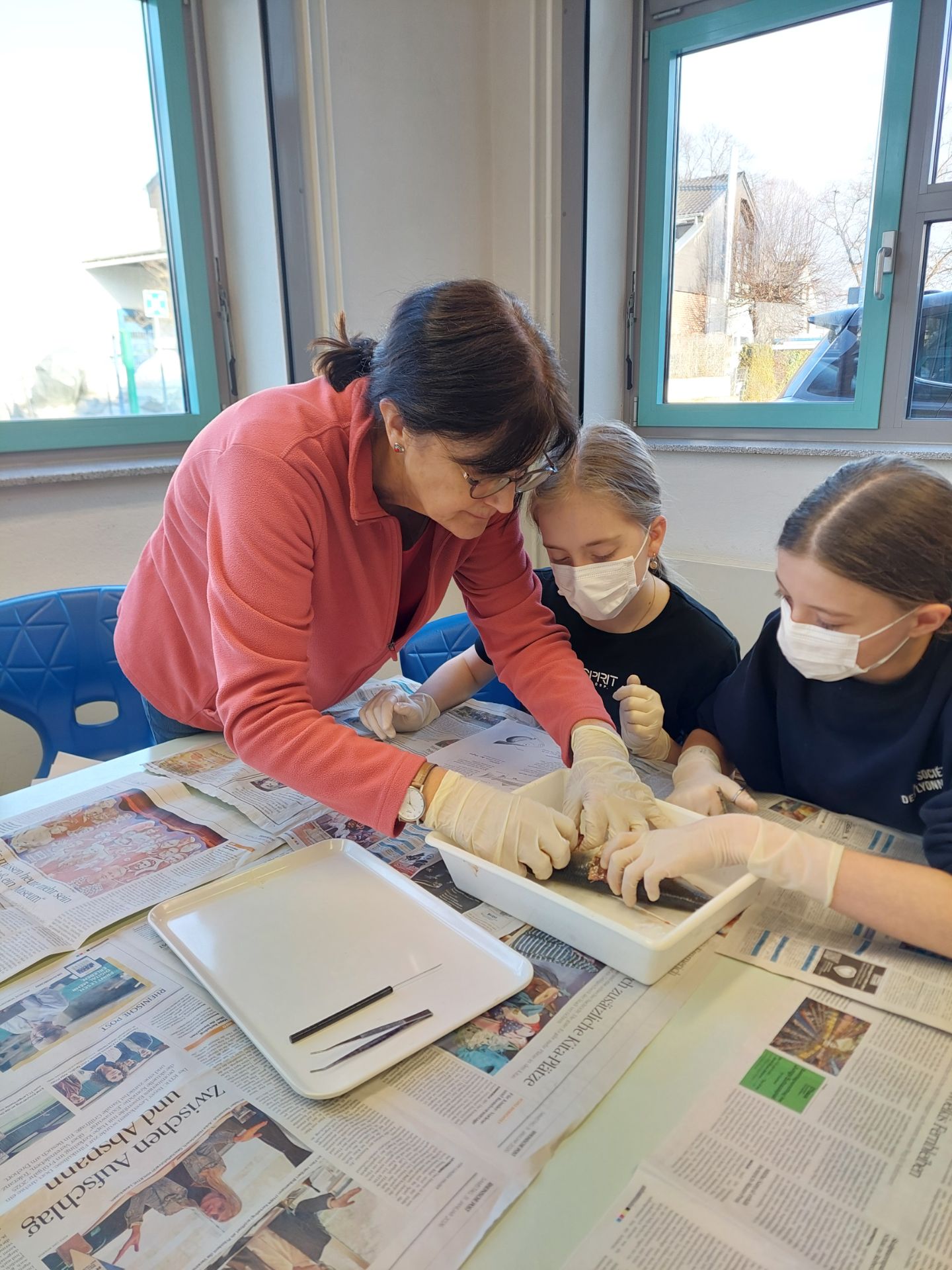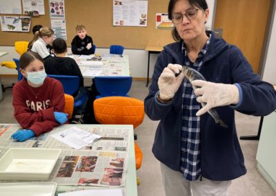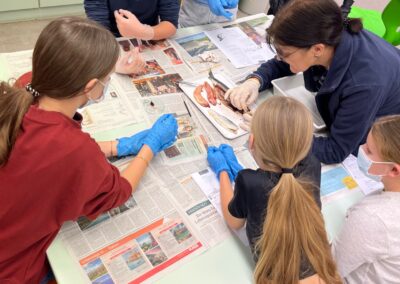 Zum spannenden Abschluss der Unterrichtsreihe „Wirbeltiere“ wurde es für die Klassen 6a und 6b besonders aufregend. Gemeinsam mit den Fachlehrerinnen Maria Cash und Nicole Ammann sezierten sie echte Heringe im Biologieunterricht. So konnten unsere Schülerinnen und Schüler die Organe der Fische nicht nur aus dem Buch kennenlernen, sondern in natura sehen, erkennen und sogar anfassen.