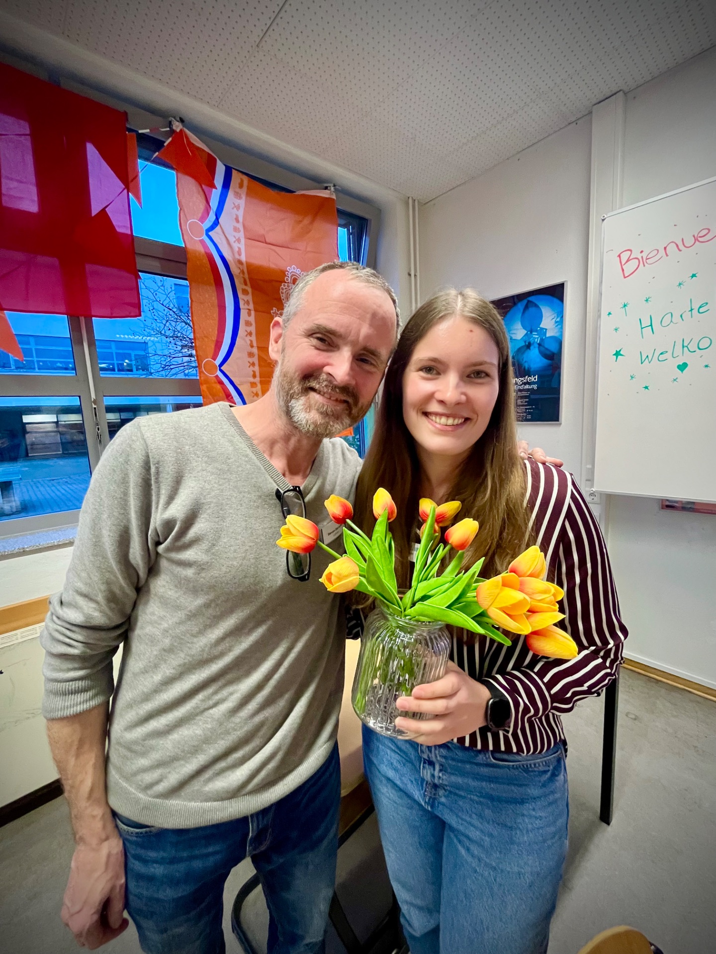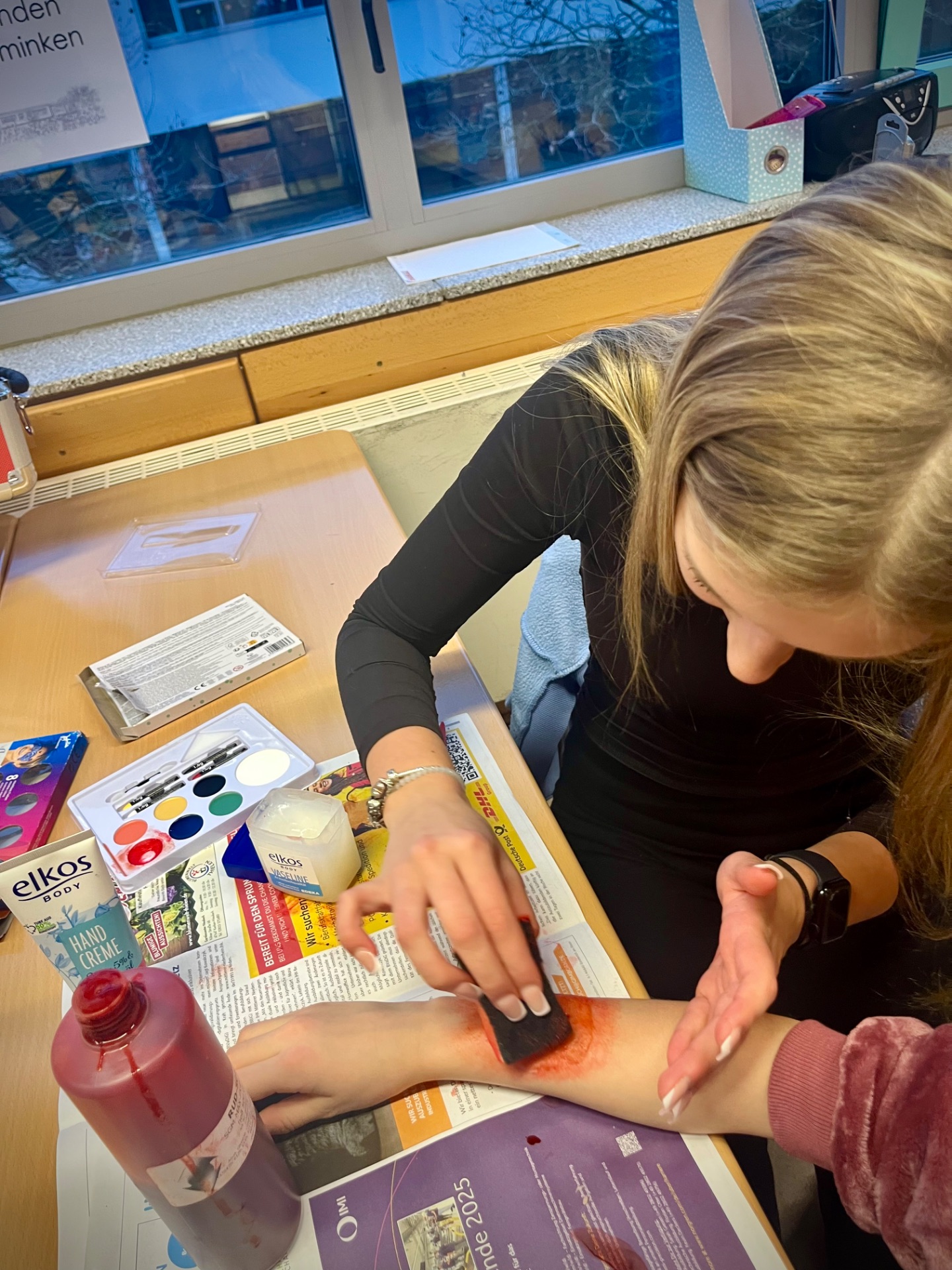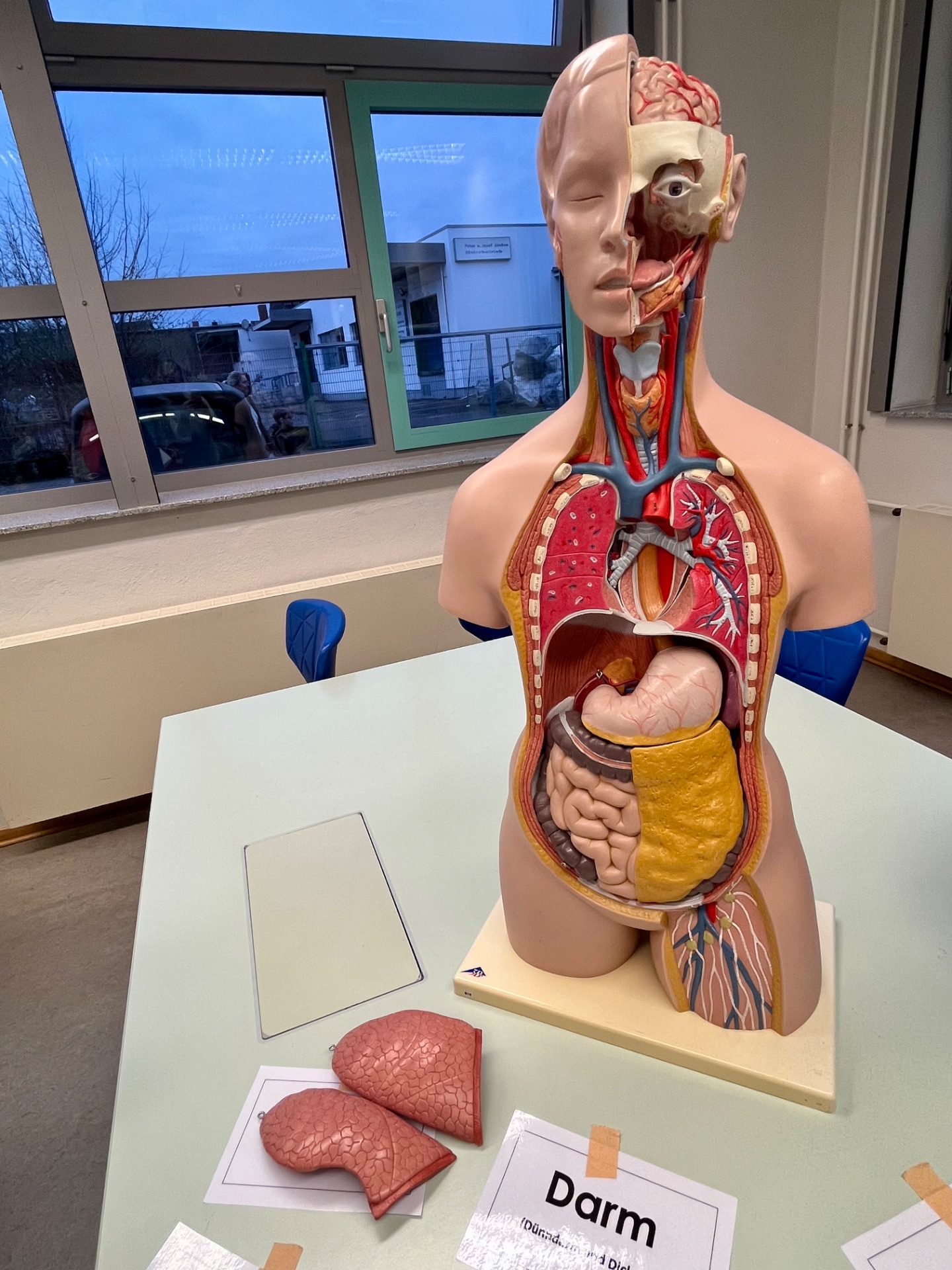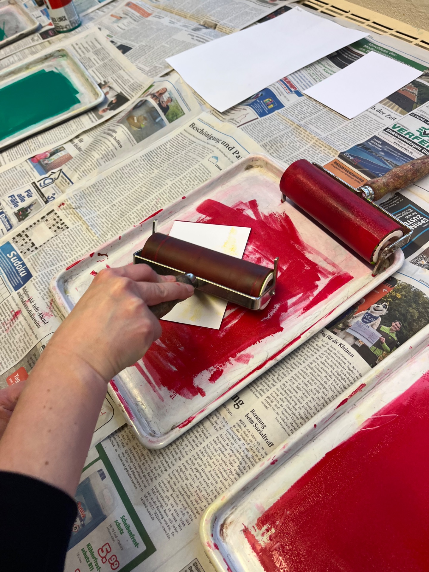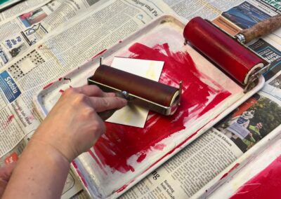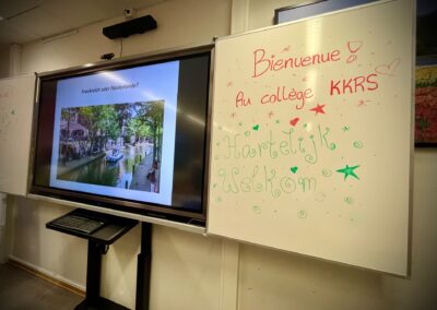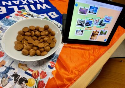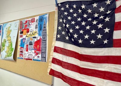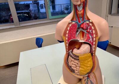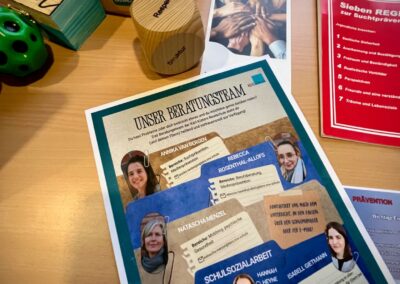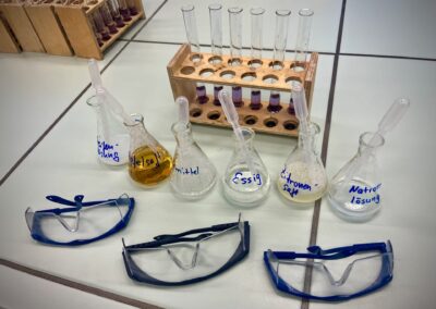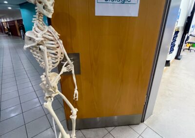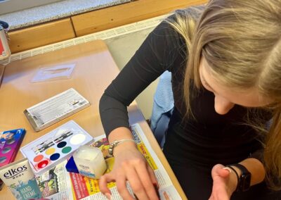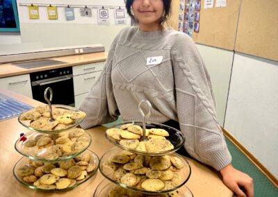In den Fachräumen wartete ein buntes Programm zum Mitmachen und Ausprobieren. Im Fach Biologie konnten mutige Besucherinnen und Besucher Stabheuschrecken berühren oder mikroskopieren. Die Fach Englisch lud mit Vokabelspielen zum spielerischen Lernen ein, während man in Deutsch zum Märchenexperten werden konnte. Digitale Angebote wie Learning-Apps und Quizformate wurden in Niederländisch und Französisch erprobt. Technikbegeisterte bauten im Fach Technik eigene Schaltungen und Stromkreise, während sich im Informatikunterricht alles um Apps und ihre Anwendung drehte. Besonders kreativ ging es im Profilfach Kunst zu. Mit selbst gestalteten Schablonen und Farbwalzen entstanden individuelle Grafiken. Der Ergänzungsunterricht stellte eine Papierwerkstatt vor und außerdem wurde auch über die Ausbildung unserer hauseigenen Schülersanitäter informiert. In Geschichte führte eine Wappenwerkstatt ins Mittelalter, und in der Schulküche der Ernährungslehre begeisterte ein Show Baking. Sportlich wurde es in der Sporthalle mit einem aufgebauten Parcours. Auch das Gemeinsame Lernen, der Förderverein mit Informationen zur Nachmittagsbetreuung und Cafeteria sowie Angebote zur Beratung und Berufsorientierung präsentierten sich an Infoständen.