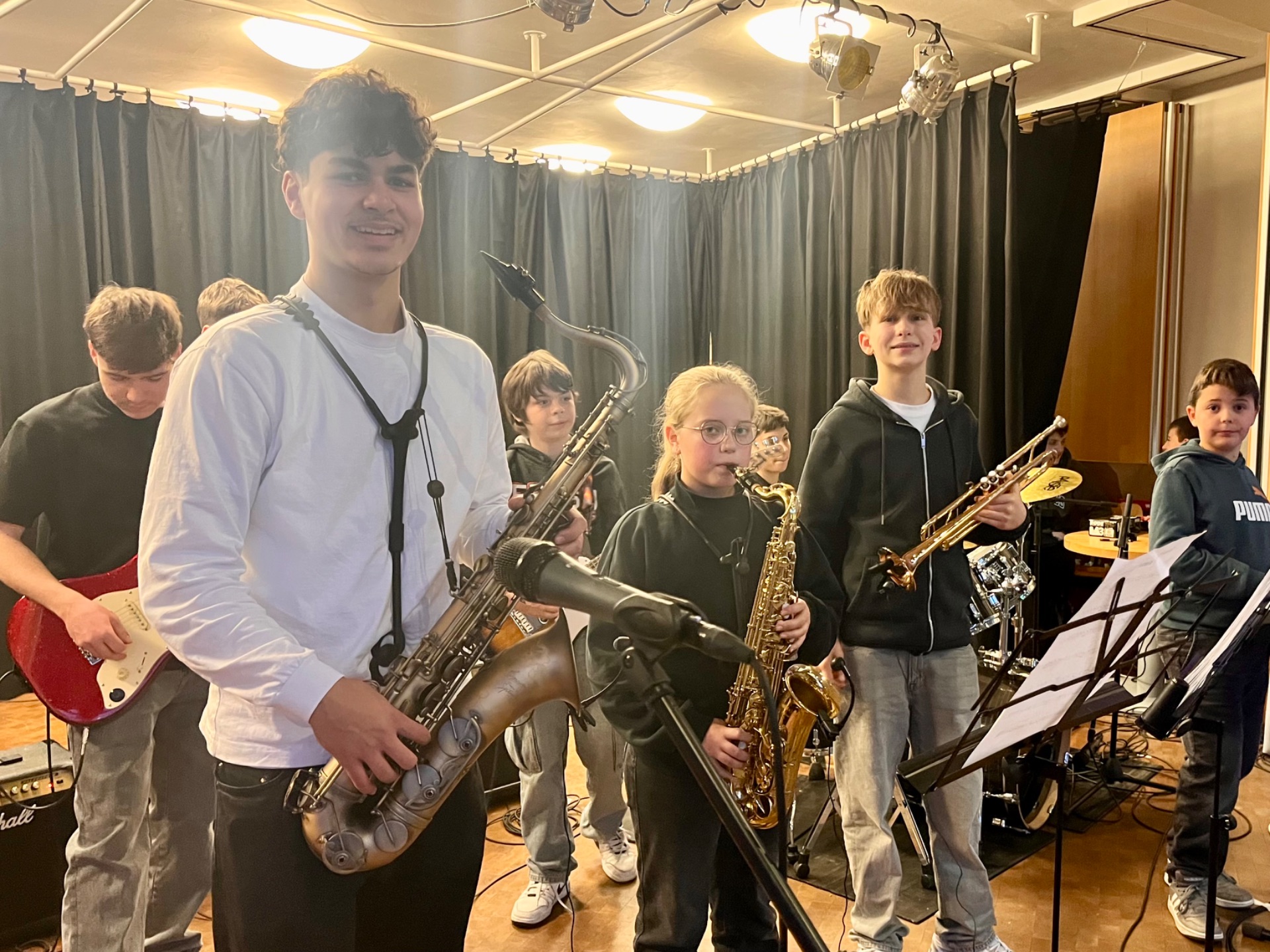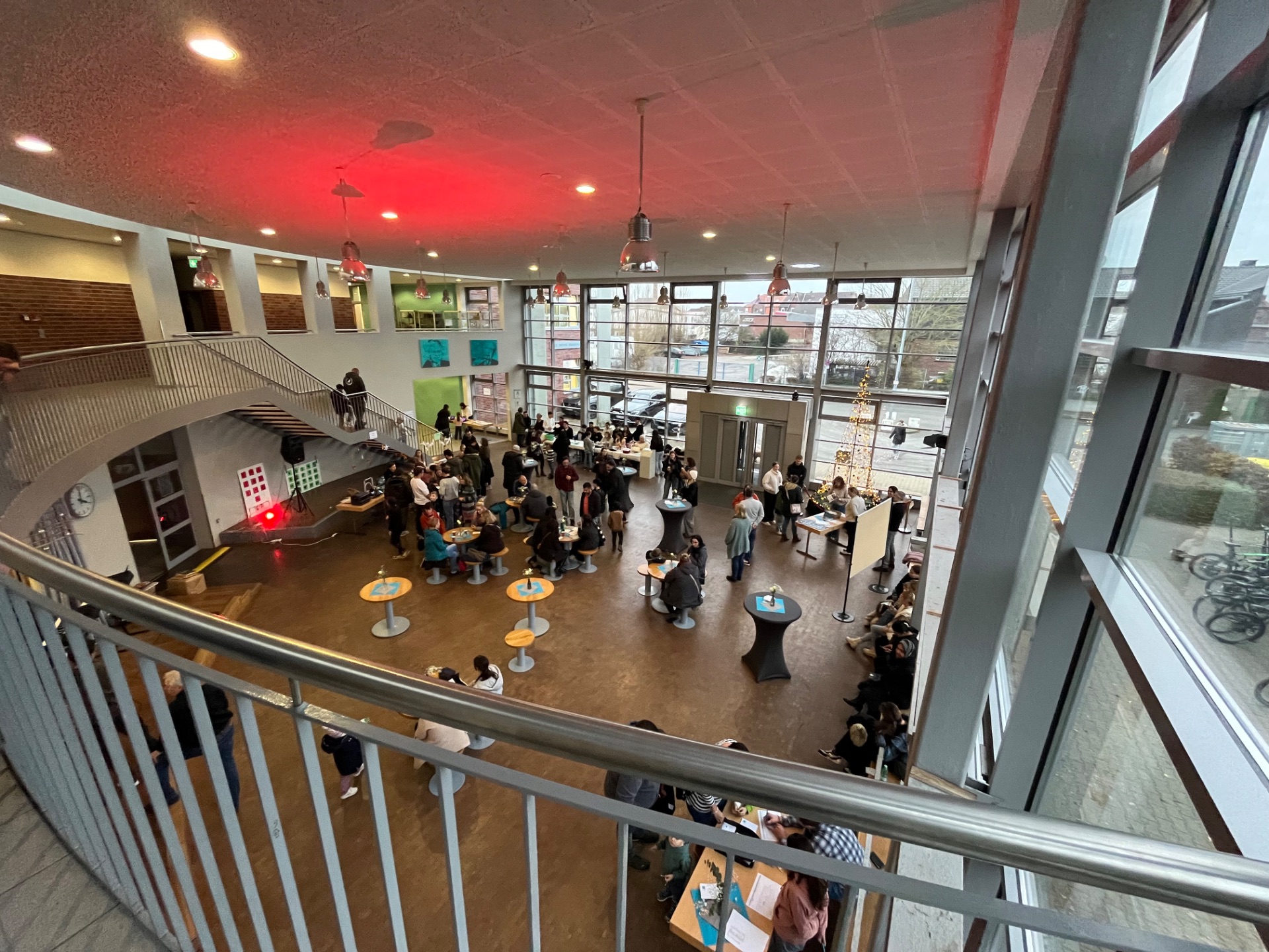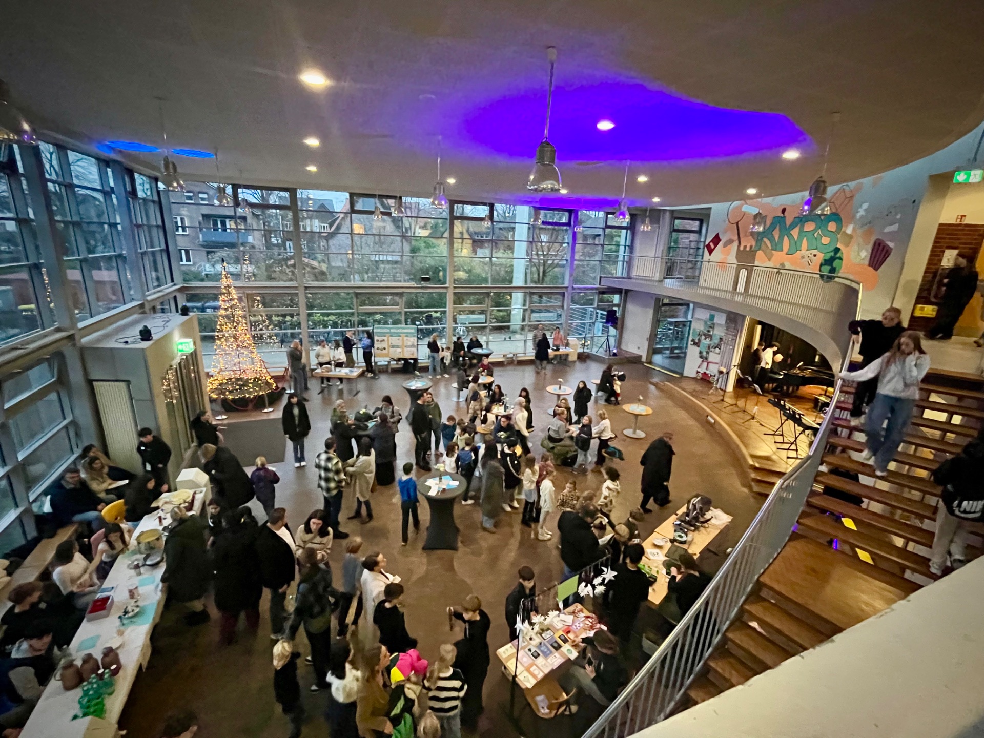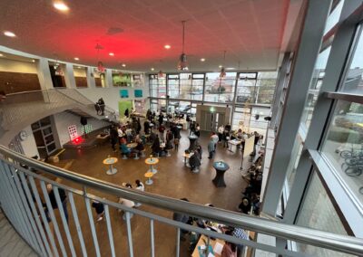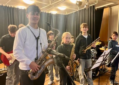 Eröffnet wurde der Nachmittag mit einer herzlichen Begrüßung durch das Schulleitungsteam. Unser Schulleiter Kristian Best hieß die Gäste im Forum willkommen und stellte unsere Schule sowie unser pädagogisches Konzept vor. Für die passende Stimmung sorgten anschließend musikalische Darbietungen unserer Schulband. Im Forum starteten auch die geführten Rundgänge durch das Schulgebäude und unseren Neubau.