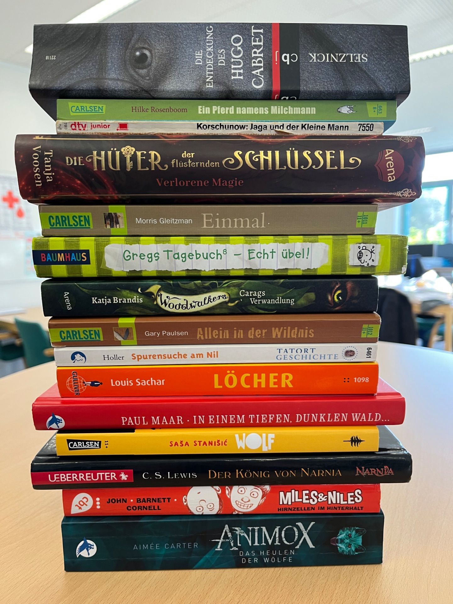 Der Vorlesetag hat an unserer Schule bereits eine lange Tradition. Auch in diesem Jahr tauchten unsere Schülerinnen und Schüler der Jahrgänge fünf und sechs für zwei Schulstunden in die Welt spannender Geschichten ein. In drei abwechslungsreichen Leserunden wurde in kleinen Gruppen vorgelesen und aufmerksam zugehört. Viele Lehrkräfte luden an unterschiedlichsten Orten innerhalb der Schule ein. Vorgelesen wurde in der Sporthalle, in Klassenräumen, im Kunstraum, in der Cafeteria und sogar im Büro der Schulleitung. Damit eine besonders gemütliche Atmosphäre entstand, wurden die Leseplätze liebevoll hergerichtet. Sitzkissen, Matten, Lichterketten und Kerzenschein sorgten für eine entspannte Stimmung und viel Gemütlichkeit. Unterstützt wurden die Jüngeren dabei von engagierten Zehntklässlern, die als Lesepaten mit unterwegs waren. Sie begleiteten die Gruppen und halfen beim Finden der Räume. Ein Dankeschön für die Organisation des Vorlesetages gebührt Frau Nowak. Die diesjährige Auswahl der Vorlesebücher ist auf dem angehängten Foto zu sehen und bot für jeden Geschmack etwas. Von humorvollen Erzählungen über spannende Abenteuer bis hin zu fantasievollen Geschichten war alles dabei. Der Vorlesetag zeigte erneut wie viel Freude gemeinsames (Vor-)Lesen machen kann und wie sehr es unsere Schulfamilie verbindet. Wir freuen uns schon jetzt auf das nächste Jahr.