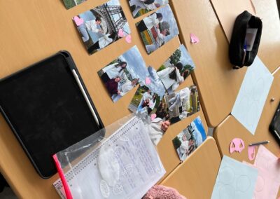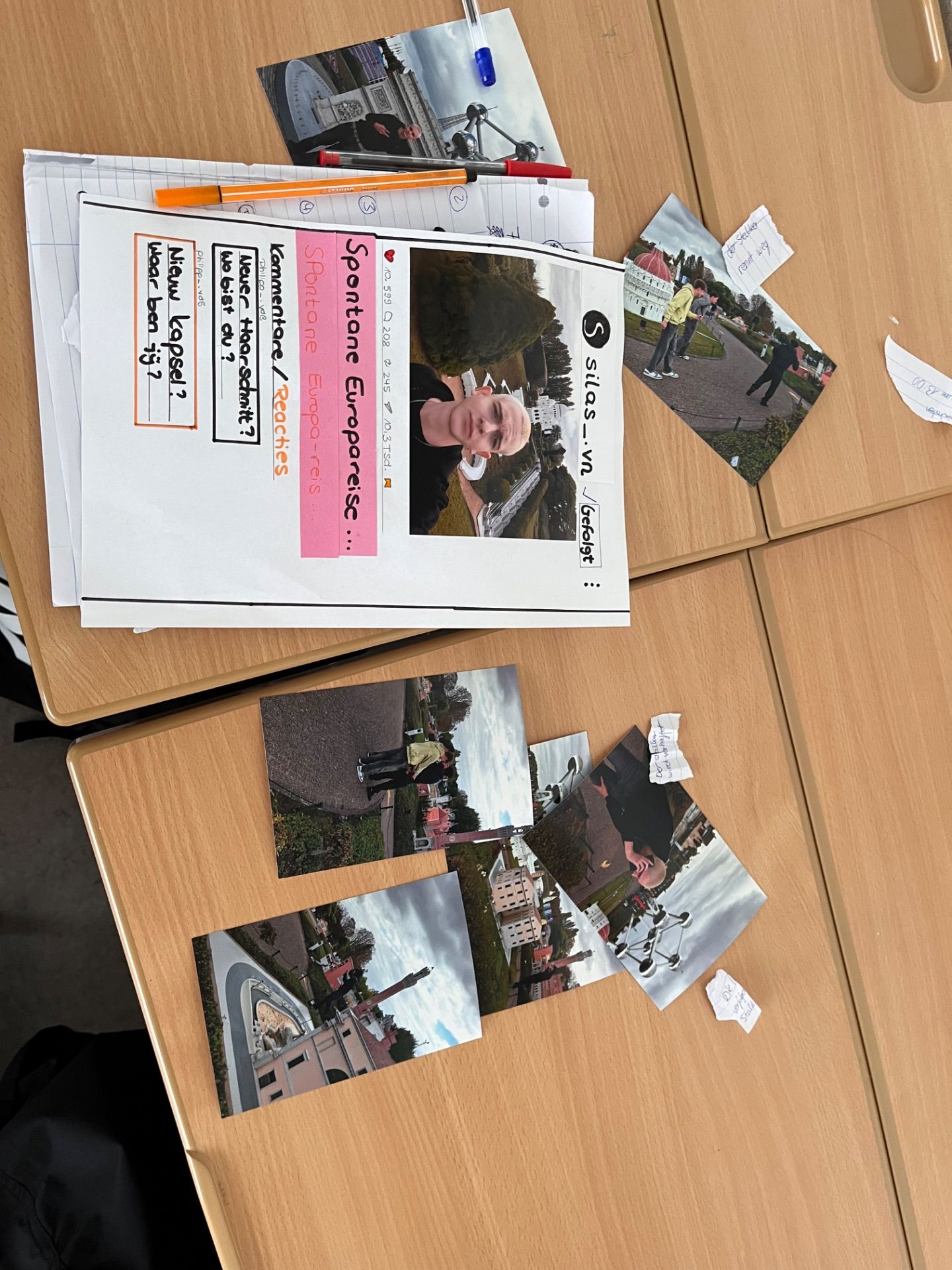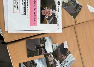 Zum Abschluss der Fahrt setzten sich alle in Kleve noch einmal kreativ mit den Erlebnissen auseinander. Mit den Fotos aus Mini-Europa gestalteten die Schülerinnen und Schüler eigene Fotogeschichten. Zur Stärkung gab es dabei Brötchen mit belgischen Aufstrichen: „lekker“/ „délicieux“!