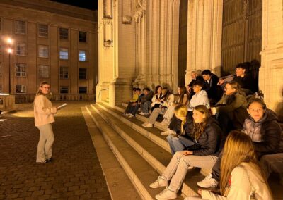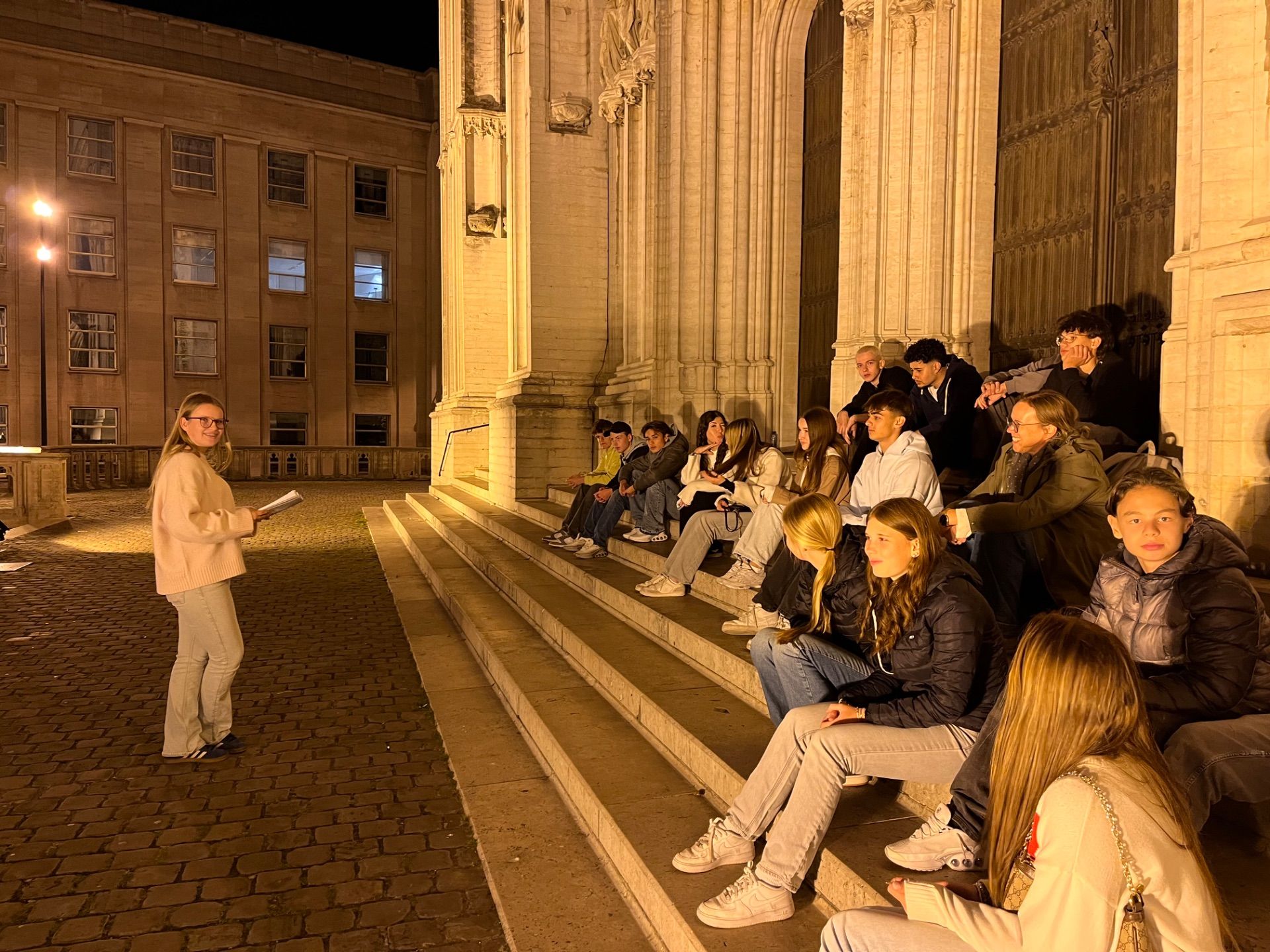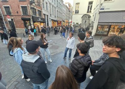 Auch Ausflüge in andere belgische Städte standen auf dem Programm. Der Niederländischkurs reiste nach Gent, wo eine Stadtbesichtigung und sprachliche Animationen durch die Sprachschule Roeland den Tag füllten. Der Französischkurs machte sich auf den Weg nach Liège und erlebte dort ein ähnliches Programm mit Sprachanimationen. Zurück in Brüssel folgte erneut ein gemeinsamer Abendspaziergang. Neben den geplanten Programmpunkten blieb auch Zeit für Freizeit. Besonders beliebt war das Einkaufen von Souvenirs wie belgischen Pralinen oder den berühmten Keksen von Maison Dandoy.